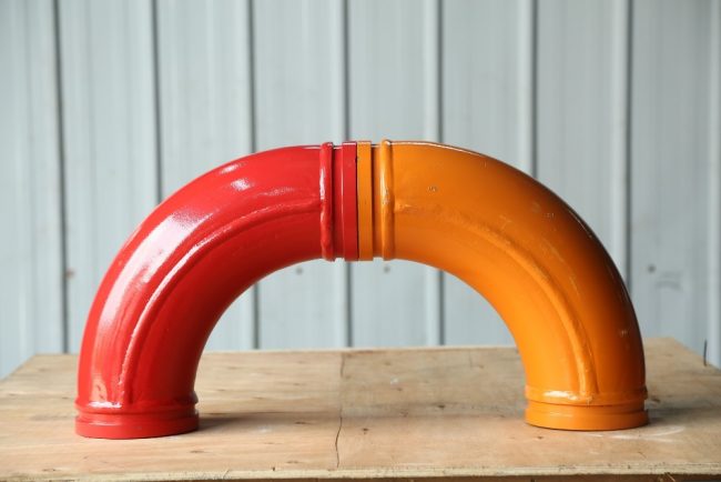 concrete pump pipe elbow Size :DN125*R275*90D Material: 13Mn-4 Flange size: sk148mm Weight:15kg Surface: Powdered coated and baked painting Lifetime: 20000CBM Factory Production Concrete pump elbow is under production Large quantity of concrete pump elbow is booked by oversea customers Concrete pump elbow is in store Related Products R275*20D Long bent elbow Reducer elbow Lengthened elbow…
