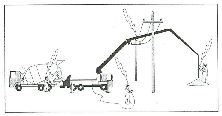 Si las bombas de hormigón, camiones bomba de hormigón o el cubo de la grúa (e incluyendo la grúa real) energizarse y alguien está siendo electrocutado, NUNCA hacer contacto con esa persona. No se pare en el hormigón o hacer contacto con cualquier acero o el equipo en el trabajo a menos que esté seguro de la potencia se ha apagado con su propio bloqueo / etiquetado de bloqueo OUT! Podría electrocutarse, también! Aunque será difícil de hacer, dejar las labores de rescate de expertos entrenados.