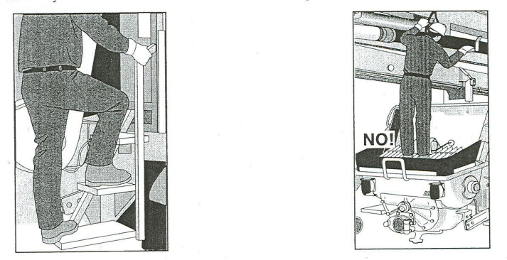 4.12 هشدار! قطع و در حال سقوط خطر. اجتناب از گرفتن بر روی پمپ بتن و یا کامیون پمپ بتن در همه. آیا در پمپ بتن و یا کامیون پمپ بتن را تحمل نمی کند چون شما می تواند تعادل خود را در نزدیکی در حال حرکت قطعات و ماشین آلات از دست دادن.