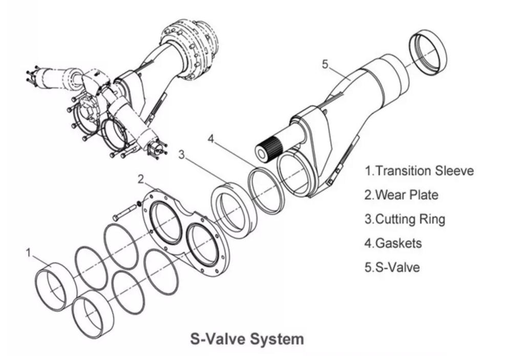 دریچه S است از صفحه ساخته, فلنج, و شفت زبانه دار کردن که از طریق جوش هم دارای مفصل کاذب شده است. شفت زبانه دار کردن از 38CrMoAI ساخته شده, که تبدیل به یک انتخاب ارجح برای تولید کننده در ساخت دریچه S پمپ بتن, کروم آستین شفت از آن ساخته شده 45#.