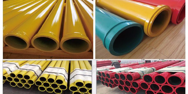 Concrete Pump Boom Pipes are generally classified as 125 and 150, which are classified as either high or low pressure.125 type pump pipe of low pressure type joint flange for ⌀148 mm , high pressure pipe joint flange for ⌀ 157mm ;The 150 low pressure pump pipe has an outer diameter of ⌀159 and the high pressure is a pipe with an outer diameter of ⌀168. The pipe head of the pump pipe is a specially processed pipe joint, which is connected with the pipe body by welding. The connection of each pipe is a pipe clip made by the process of casting.